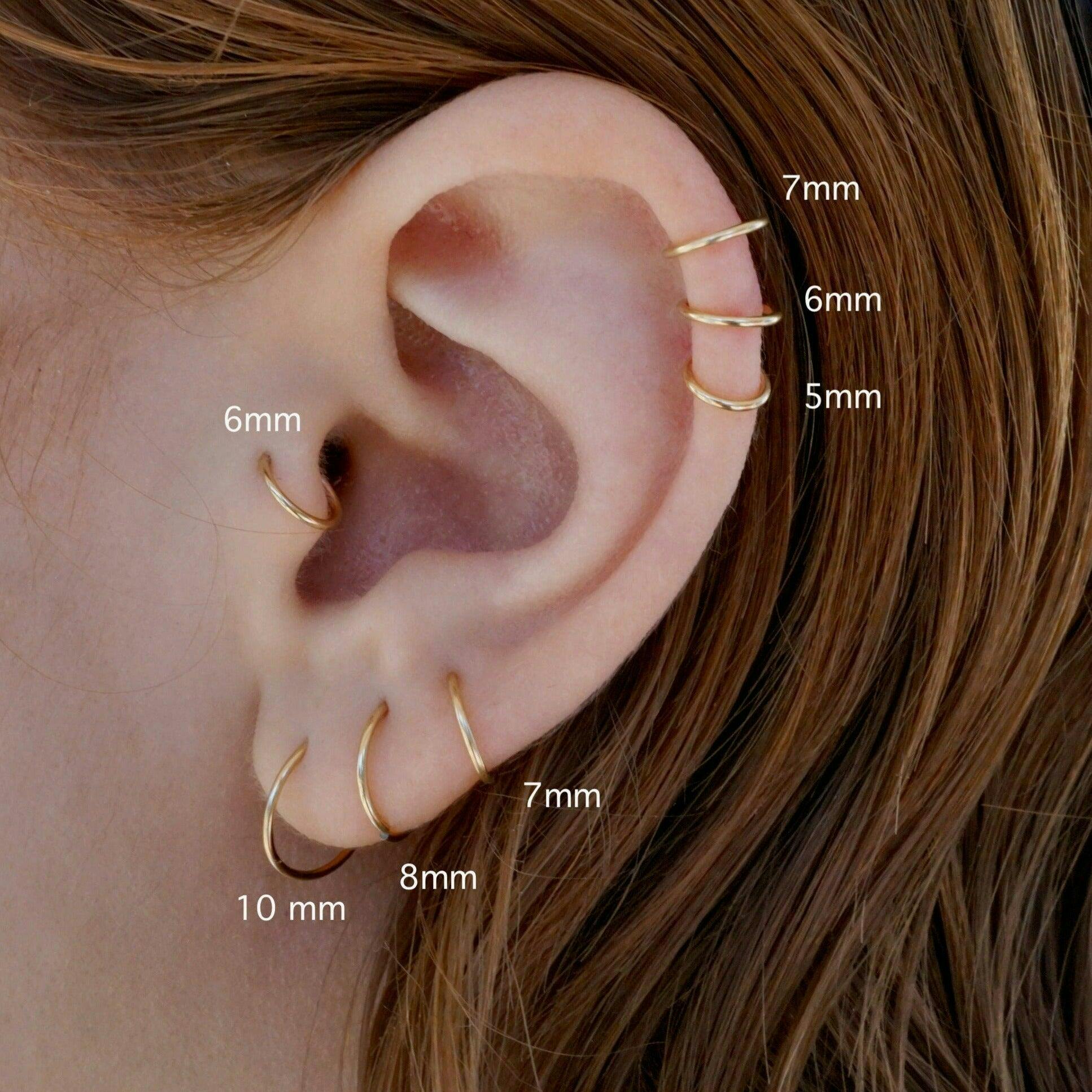 Simple and seamless hypoallergenic mini huggie hoops. Handmade minimalist body piercing. Perfect for every-day wear, the kind of piercing you leave in for months or years. This hoop can be worn in the ear, tragus, helix, daith, nose, lip, or cartilage. High-quality, simple, and versatile.