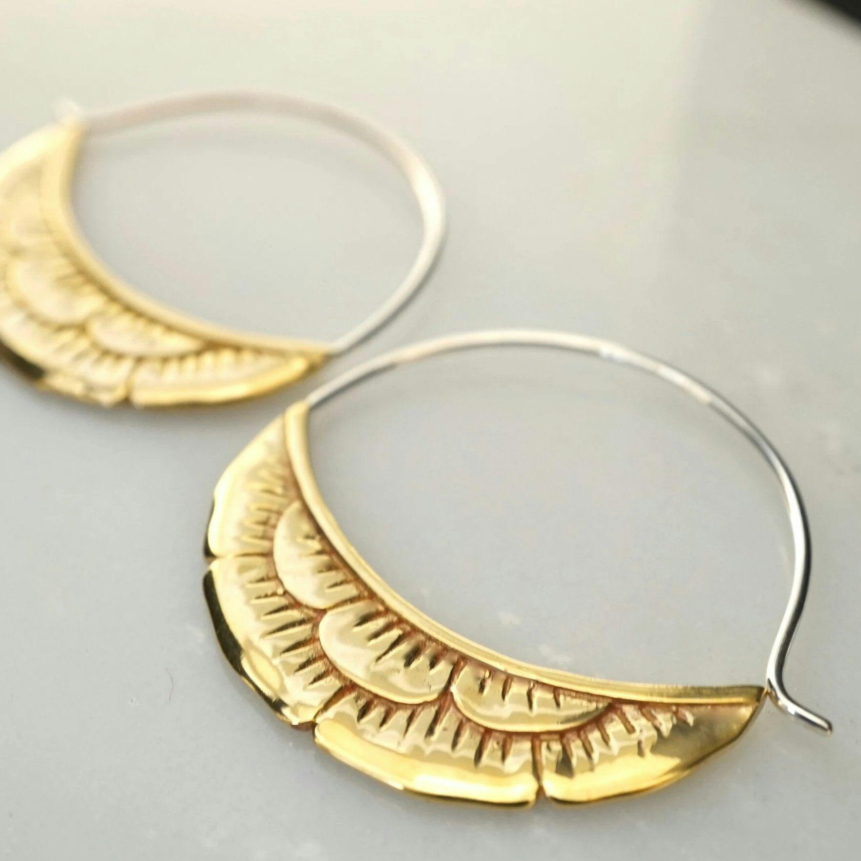 Detailed, handcrafted gold-tone flowers hang in a crescent moon shape. Each flower has depth and dimension and is crafted with the same detail on both sides of each earring.