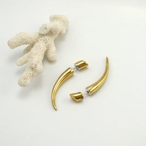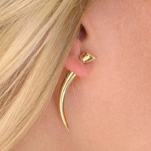 Hypoallergenic: All parts of the earring that touch the ear are sterling silver (ear-wires and inner surfaces). The talons have hollow construction to keep them light-weight, yet they are STRONG--you need not worry about them breaking or denting. Anyone can achieve a gauged look with these bold brass talons. They are hand crafted to be worn and loved for many many years. Standard 20 Gauge ear-wires fit securely into the back half of the earring.