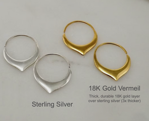 These elegant petal-shaped huggie hoop earrings combine minimalist style with organic dimension. Unlike flat hoops, their curved, tapered design adds subtle depth for a more artistic, sculptural look. Lightweight and comfortable enough for everyday wear — even to sleep in — these tiny hoops are secure, stylish, and made to stay in place. A perfect go-to for minimalist, modern jewelry lovers.