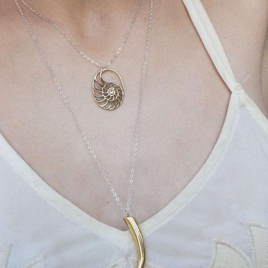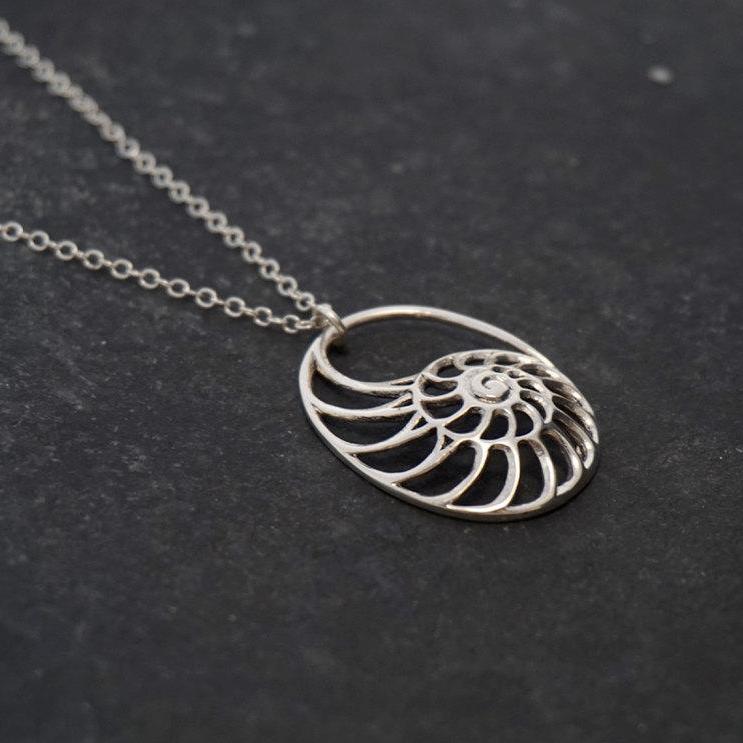 Nautilus necklace -Sterling Silver - Ammonite Pendant - Fibonacci Spiral - Nautical Gift - Ocean Lover Jewelry (120S)