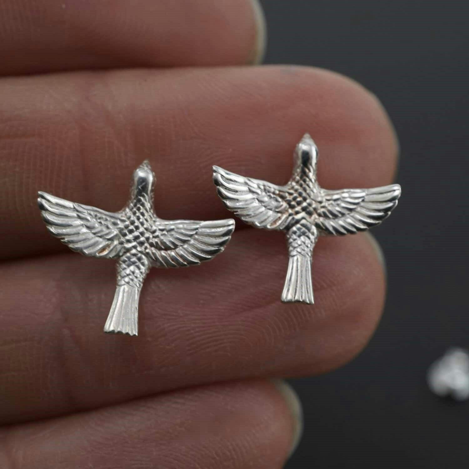 Little birds don't get any sweeter or lovelier than this! Birds in flight are a good omen, symbolizing love, peace, harmony, and balance. Each bird is a little 3D sculpture. Highly detailed with wings outstretched. Lightweight and secure on the ear for everyday wear.