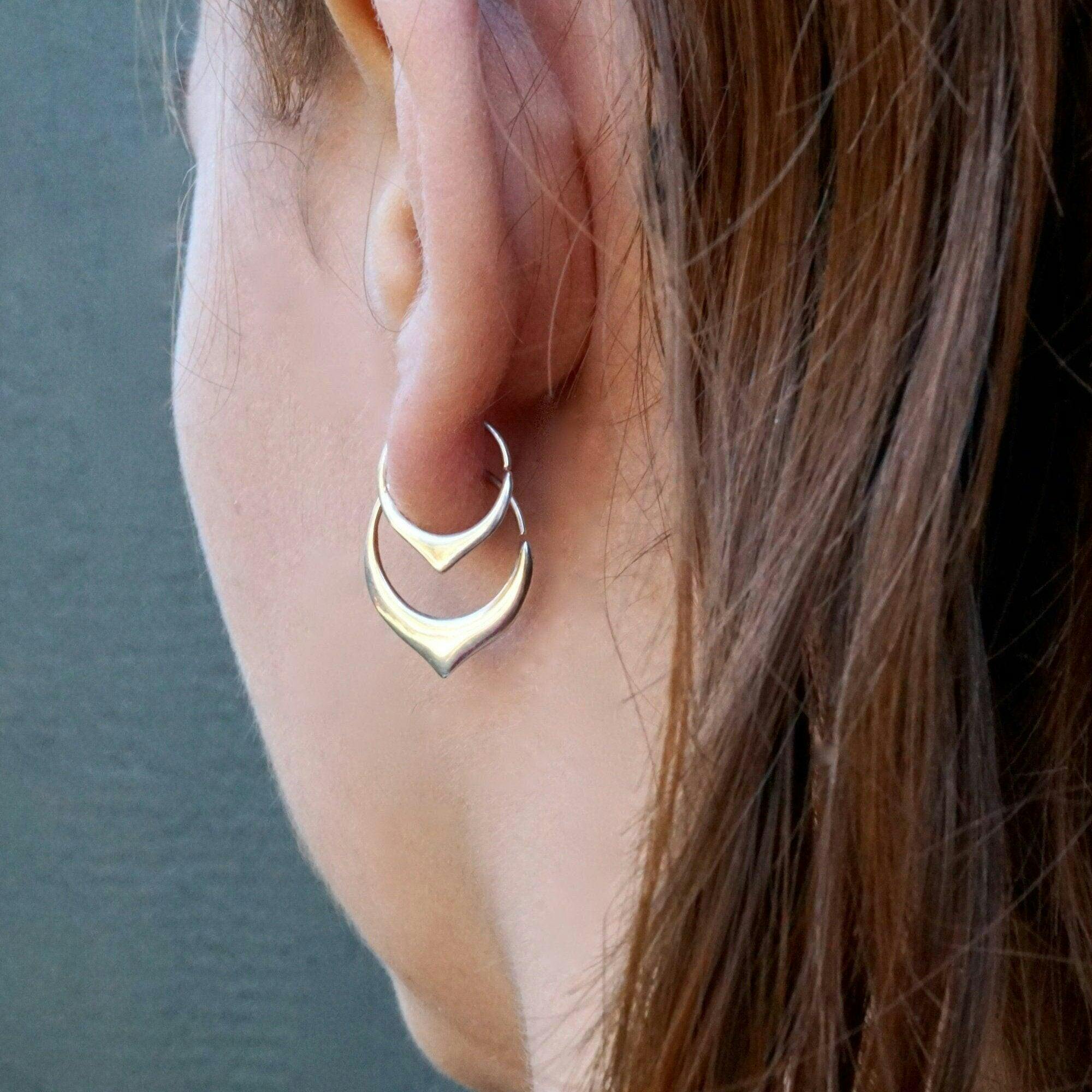 Artisan Flower Petal Sleeper Earrings in silver or gold. Made for Cartilage, tragus, helix, daith, conch, and ear piercings. Elegant and simple little petals with artistic depth and dimension to the design. They are small, lightweight, and comfortable. Plus, they'll never fall out of your ears.