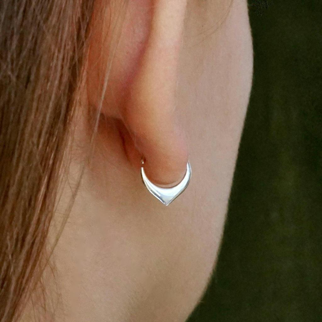 These tiny hoop earrings are perfect for stacking with other piercings or wearing solo for a minimalist, everyday look. Designed to fit comfortably in multiple ear placements — including cartilage, helix, and daith — they’re lightweight, secure, and easy to wear. The petal-shaped hoop has a curved, tapered design (not flat), adding subtle dimension. Versatile, dainty, and built to stay put all day.